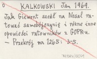 KALKOWSKI Jan 1969 Jak Giewont szedł na Nosal ratować samobójczynię i różne inne opowieści ratowników z GOPR-u.