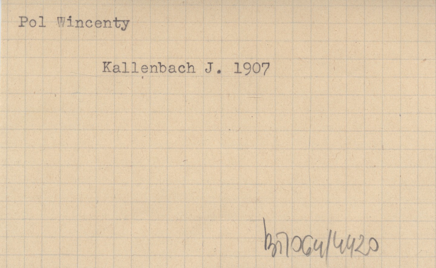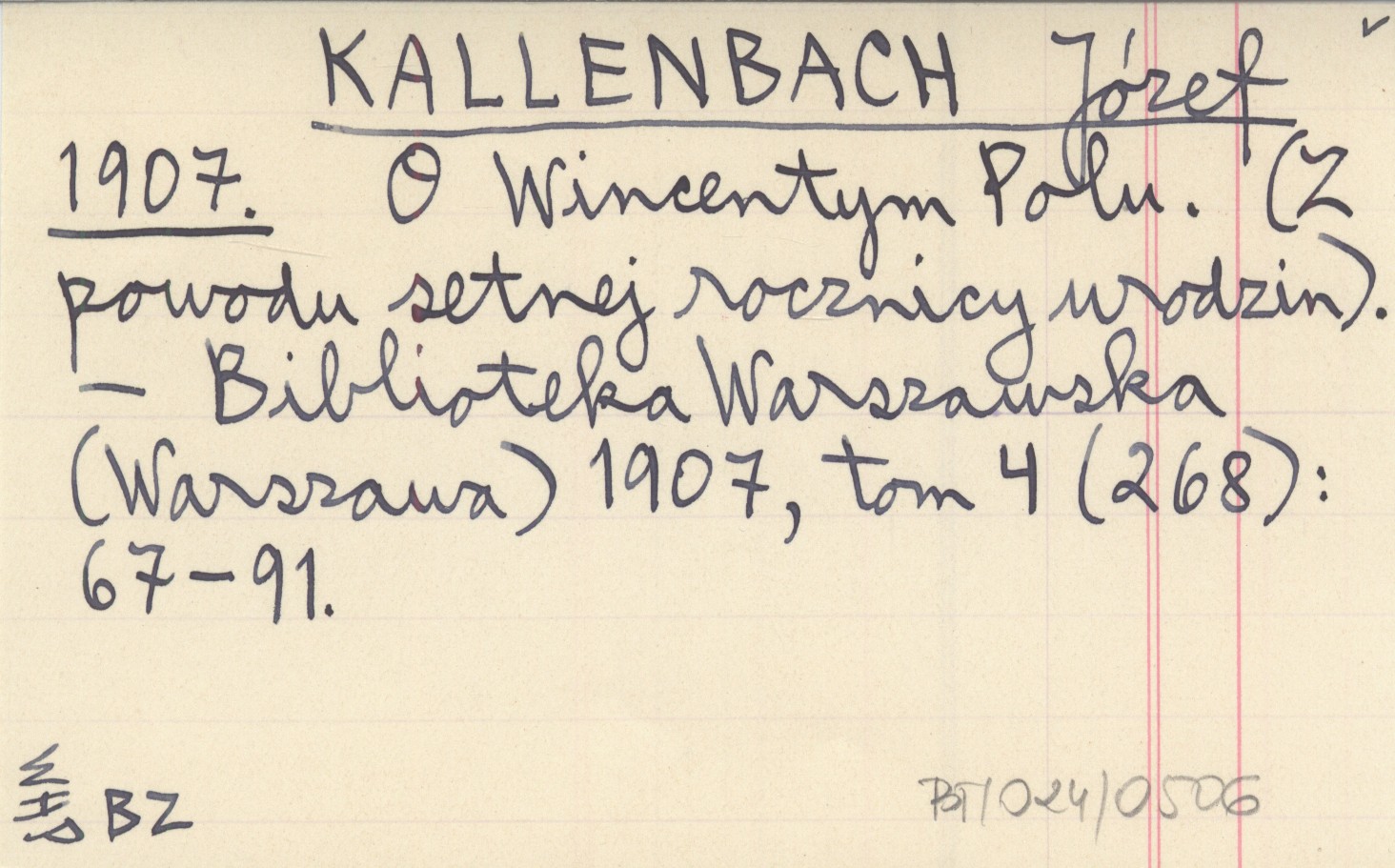 KALLENBACH Józef 1907 O Wincentym Polu. (Z powodu setnej rocznicy urodzin).