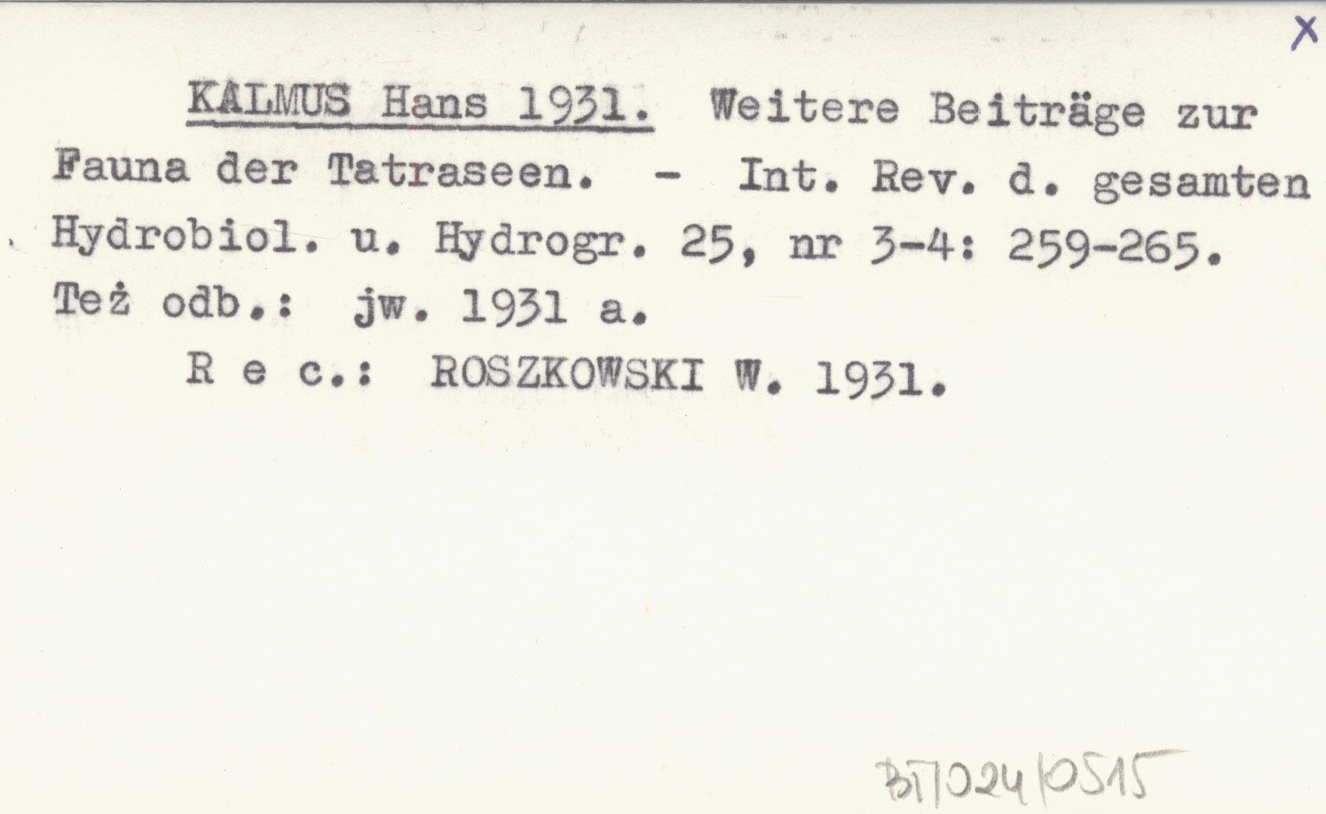KALMUS Hans 1931 Weitere Beiträge zur Fauna der Tatraseen.
