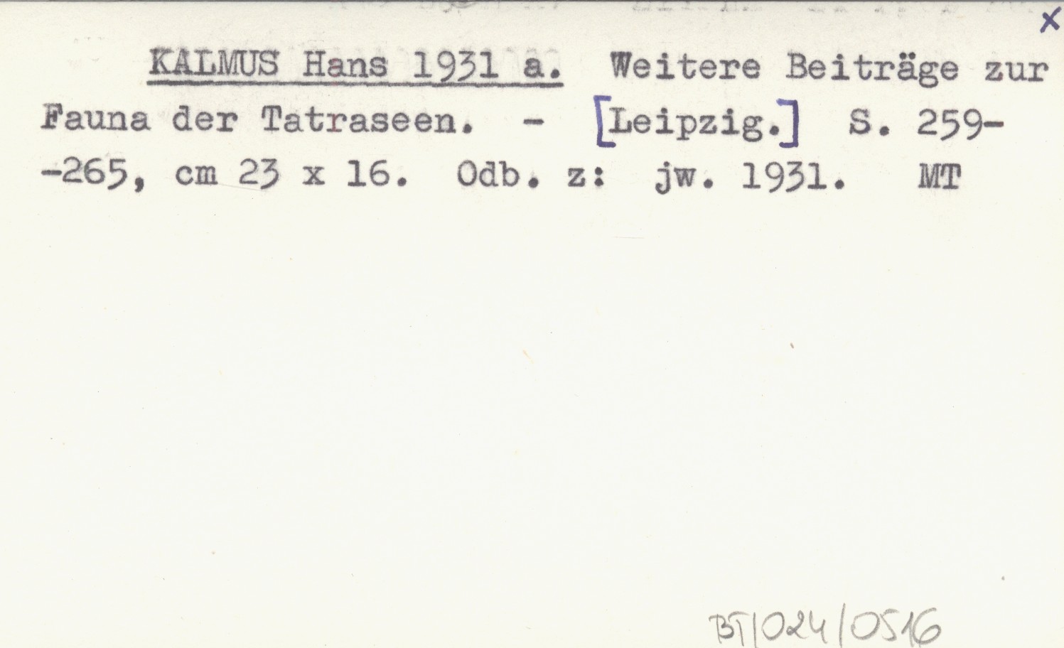 KALMUS Hans 1931 a Weitere Beiträge zur Fauna der Tatraseen.