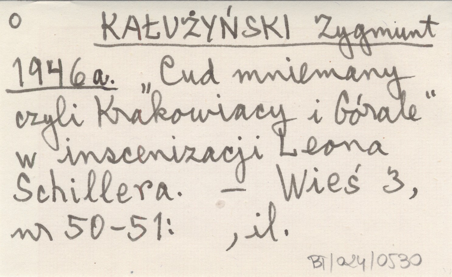 KAŁUŻYŃSKI Zygmunt 1946 a "Cud mniemany czyli Krakowiacy i Górale" w inscenizacji Leona Schillera.