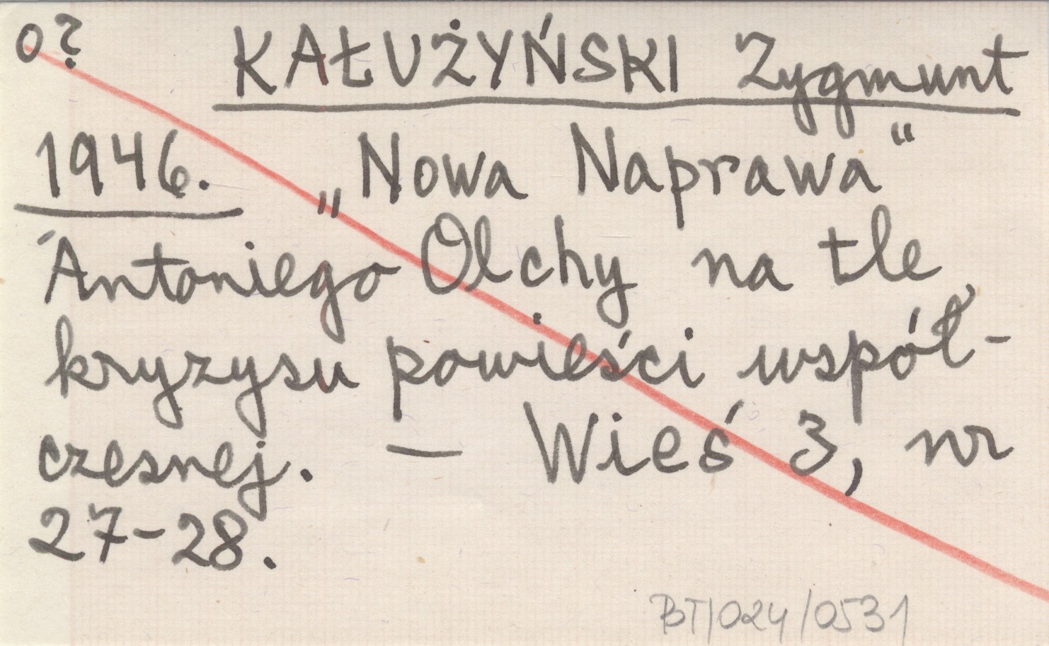 KAŁUŻYŃSKI Zygmunt 1946 "Nowa Naprawa" Antoniego Olchy na tle kryzysu powieści współczesnej.