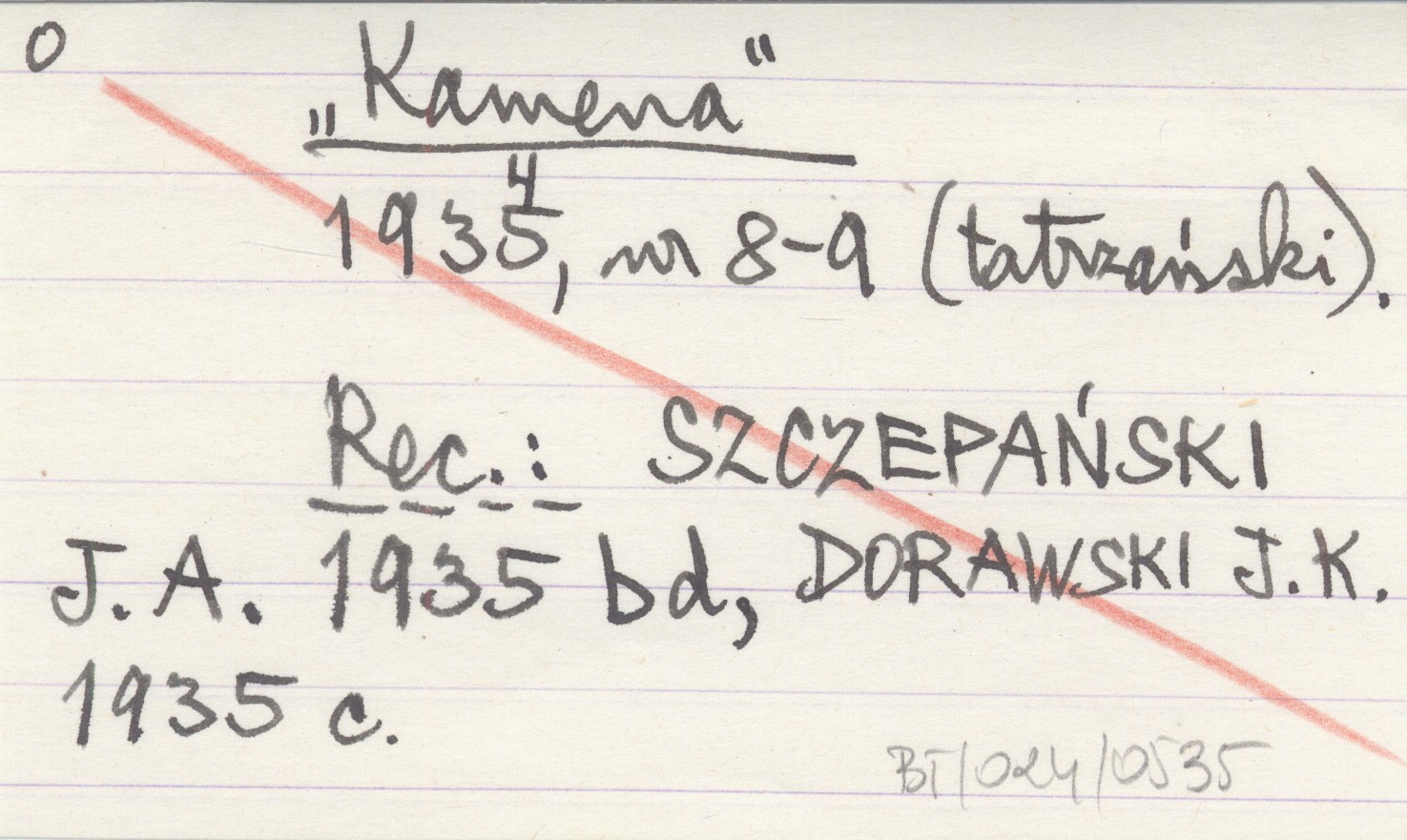 , 1935(4), nr 8-9. (Tatrzański). REC: SZCZEPAŃSKI J. A. 1935 bd, DORAWSKI J. K. 1935 c.