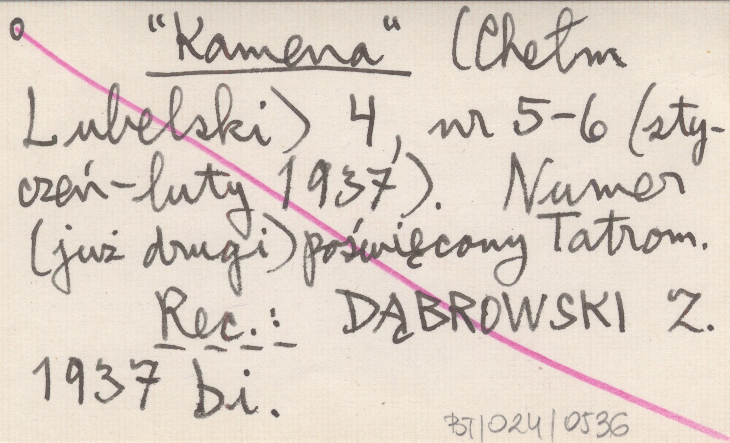 Kamena (Chełm Lubelski) , 4, nr 5-6 (01-02.1937). Numer (już drugi) poświęcony Tatrom. REC: DĄBROWSKI Z. 1937 bi.
