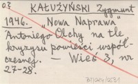KAŁUŻYŃSKI Zygmunt 1946 "Nowa Naprawa" Antoniego Olchy na tle kryzysu powieści współczesnej.