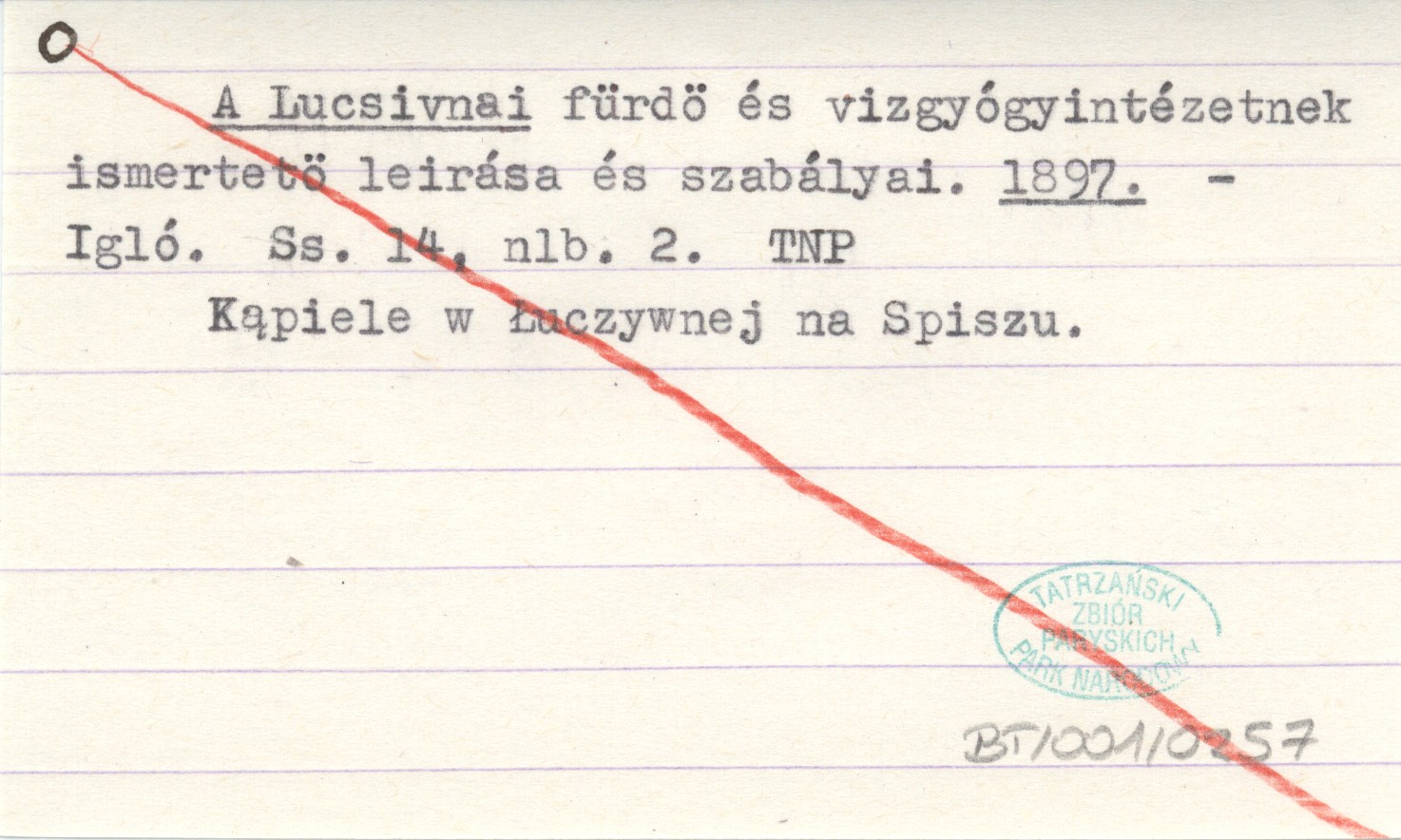 A Lucsivnai fürdö és vizgyógyintézetnek ismertetö leirása és szabályai. 1897