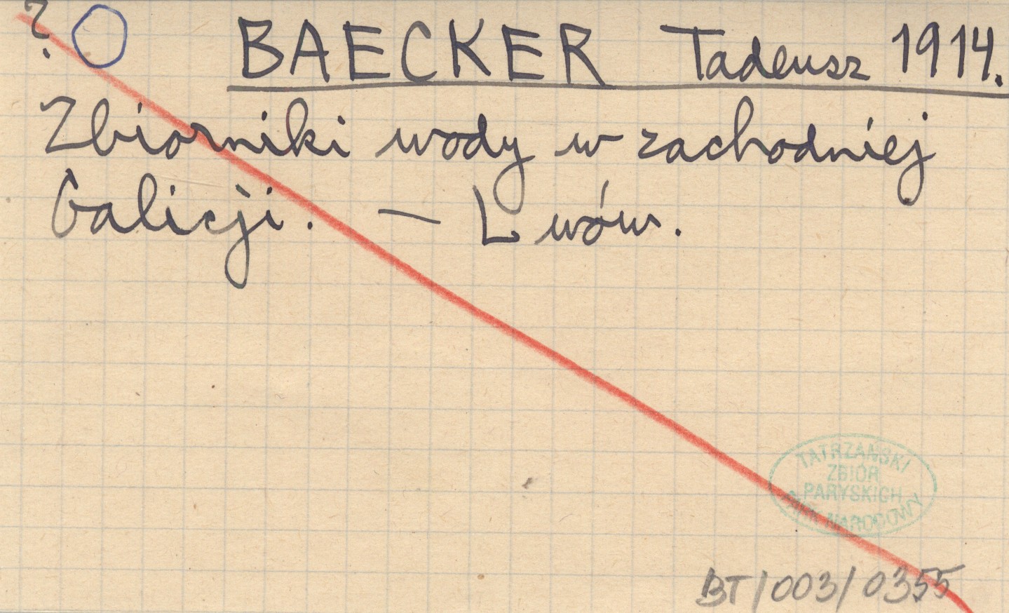 BAECKER Tadeusz 1914 Zbiornik wody w zachodniej Galicji.