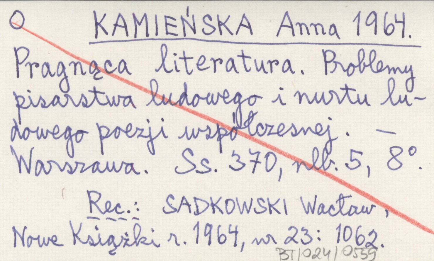 KAMIEŃSKA Anna 1964 Pragnąca literatura. Problemy pisarstwa ludowego i nurtu ludowego poezji współczesnej.