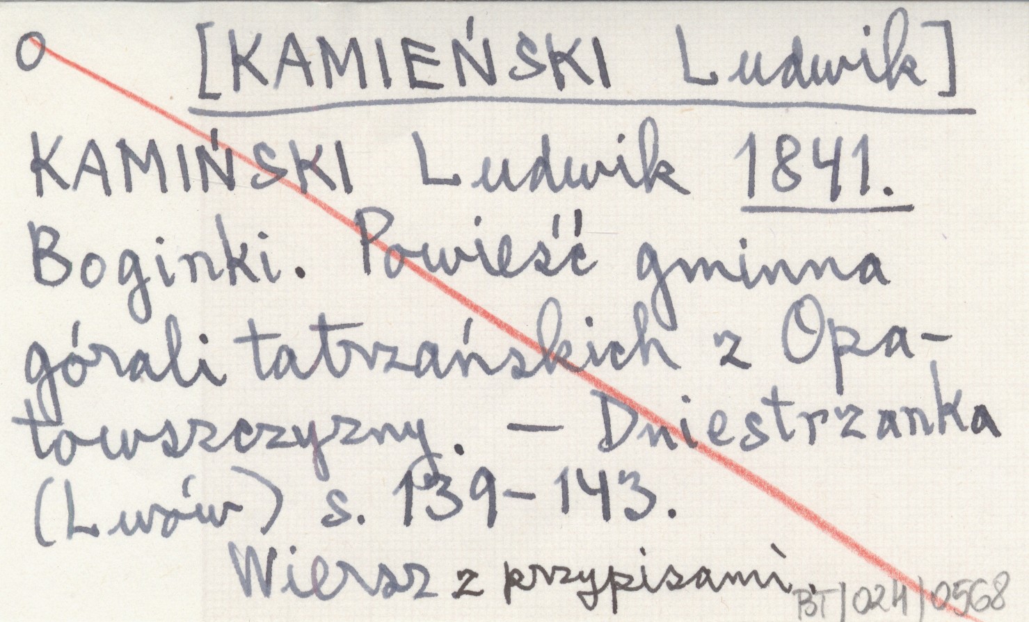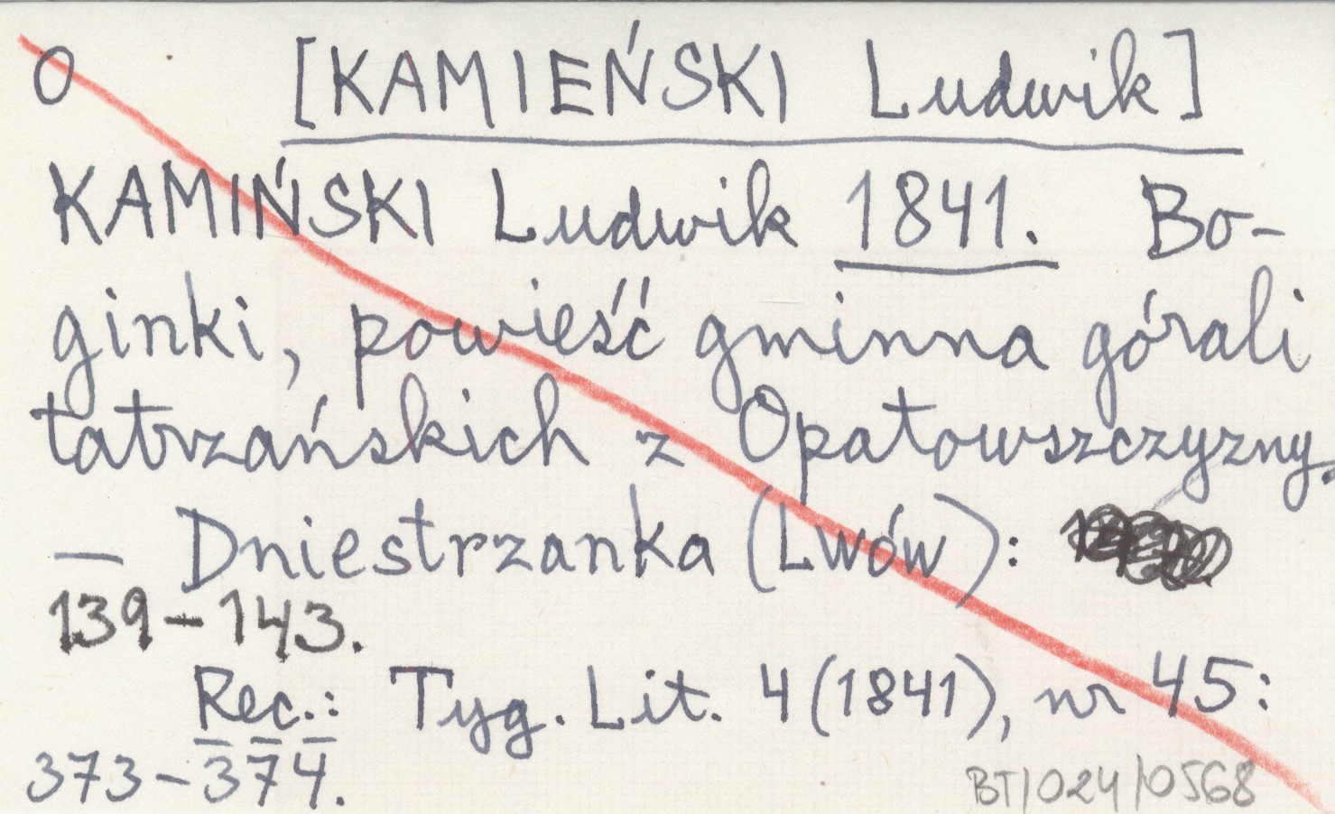 KAMIŃSKI Ludwik [KAMIEŃSKI Ludwik] 1841 Boginki. Powieść gminna górali tatrzańskich z Opatowszczyzny.