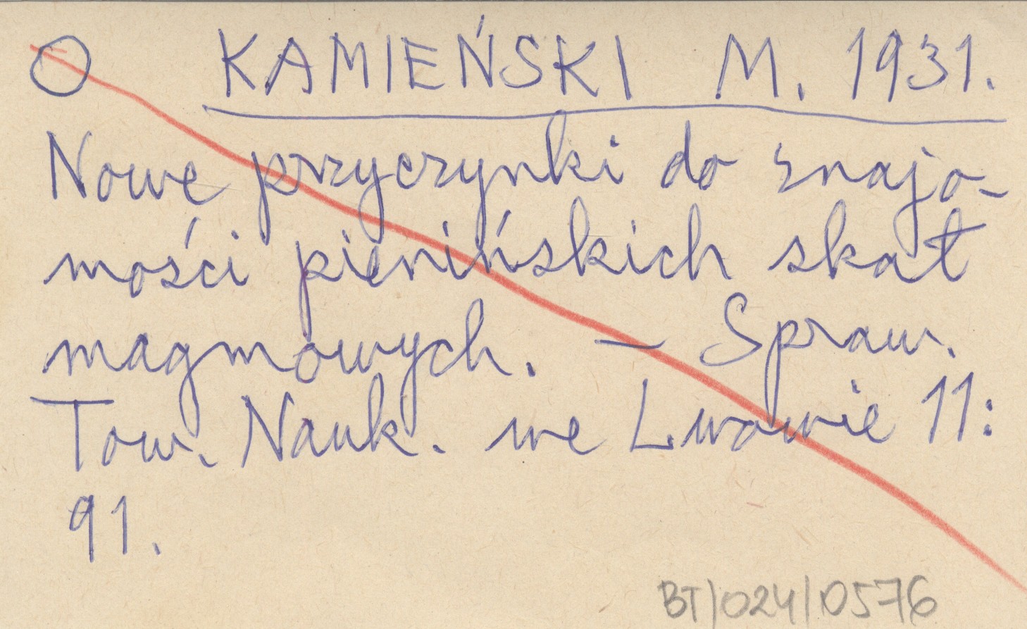 KAMIEŃSKI M. 1931 Nowe przyczynki do znajomości pienińskich skał magmowych.