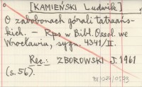 [KAMIEŃSKI Ludwik] O zabobonach górali tatrzańskich.