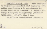 KAMIEŃSKI M. 1931 Nowe przyczynki do znajomości pienińskich skał magmowych.