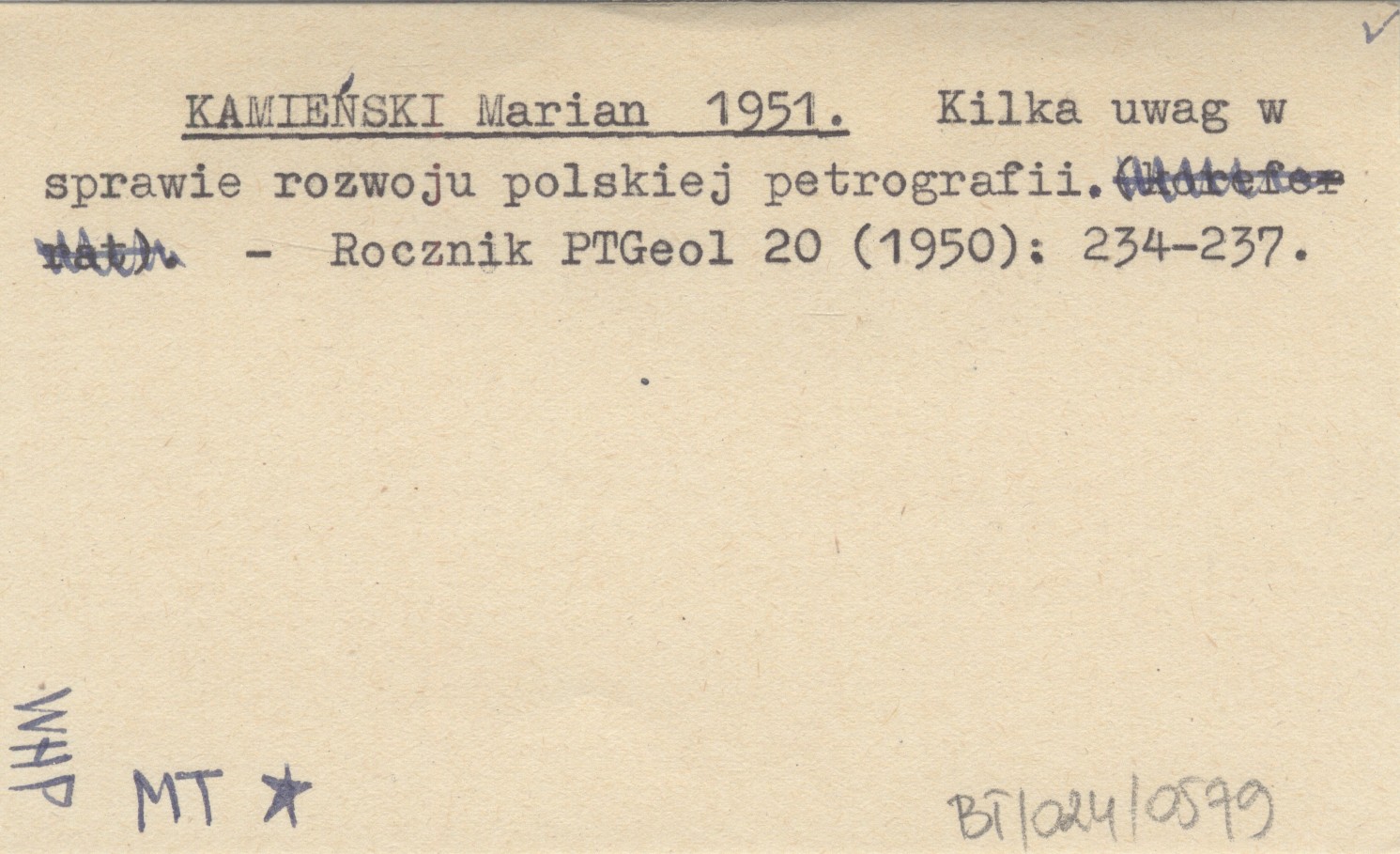 KAMIEŃSKI Marian 1951 Kilka uwag w sprawie rozwoju polskiej petrografii.