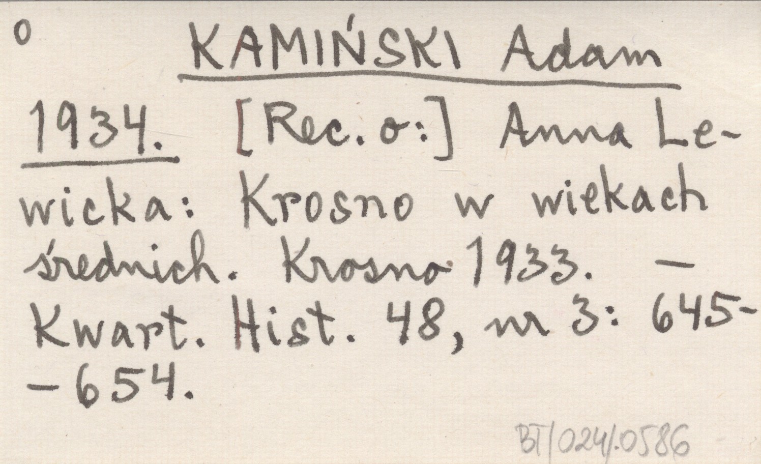 KAMIŃSKI Adam 1934 Anna Lewicka: Krosno w wiekach średnich. Krosno 1933.