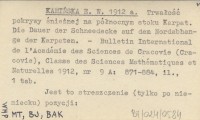 KAMIŃSKA E. W. 1912 a Trwałość pokrywy śnieżnej na północnym stoku Karpat. Die Dauer der Schneedecke auf dem Nordabhange der Karpaten.