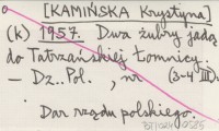 (k) [KAMIŃSKA Krystyna] 1957 Dwa żubry jadą do Tatrzańskiej Łomnicy.