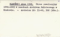 KAMIŃSKI Adam 1948 Okres rewolucyjny 1846-1849 w zasobach Archiwum Państwowego w Krakowie.