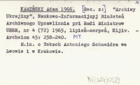 KAMIŃSKI Adam 1966 "Archiwy Ukrajiny", Naukowo-Informacijnyj Biułeteń Archiwnogo Uprawlinnia pri Radi Ministrow URSR, nr 4 (72) 1965, lipień-serpeń, Kijiv.