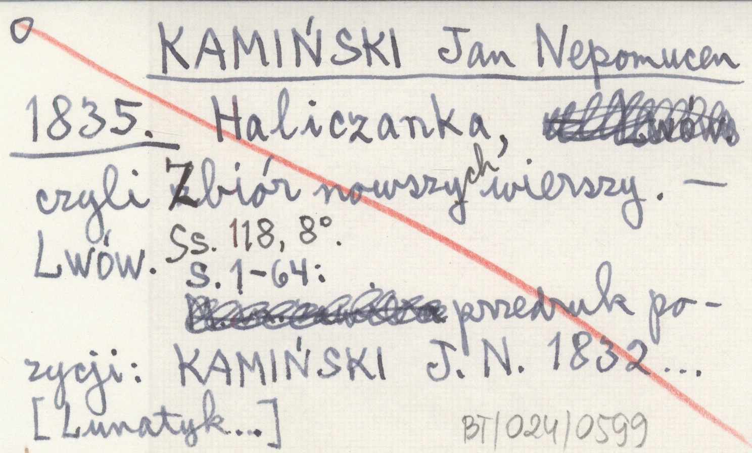 Lwów , 118 s., 8°. S. 1-64: przedruk pozycji: KAMIŃSKI J. N. 1832... [Lunatyk...].