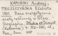 KAMIŃSKI Andrzej TROSZCZYŃSKA, Elżbieta. ; 1981 Baza energetyczna szaty roślinnej w Polsce.