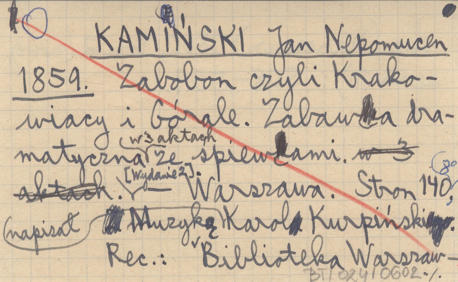 KAMIŃSKI Jan Nepomucen 1859 Zabobon czyli Krakowiacy i Górale. Zabawka dramatyczna w 3 aktach ze śpiewkami.