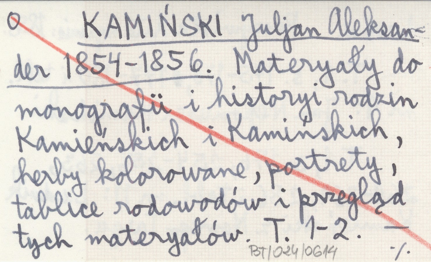 KAMIŃSKI Juljan Aleksander 1854-1856 Materyały do monografii i historyi rodzin Kamieńskich i Kamińskich, herby kolorowane, portrety, tablice rodowodów i przegląd tych materyalów.