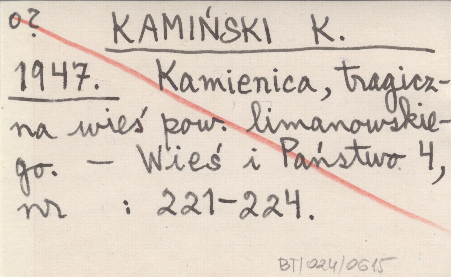 KAMIŃSKI K. 1947 Kamienica, tragiczna wieś pow. limanowskiego.