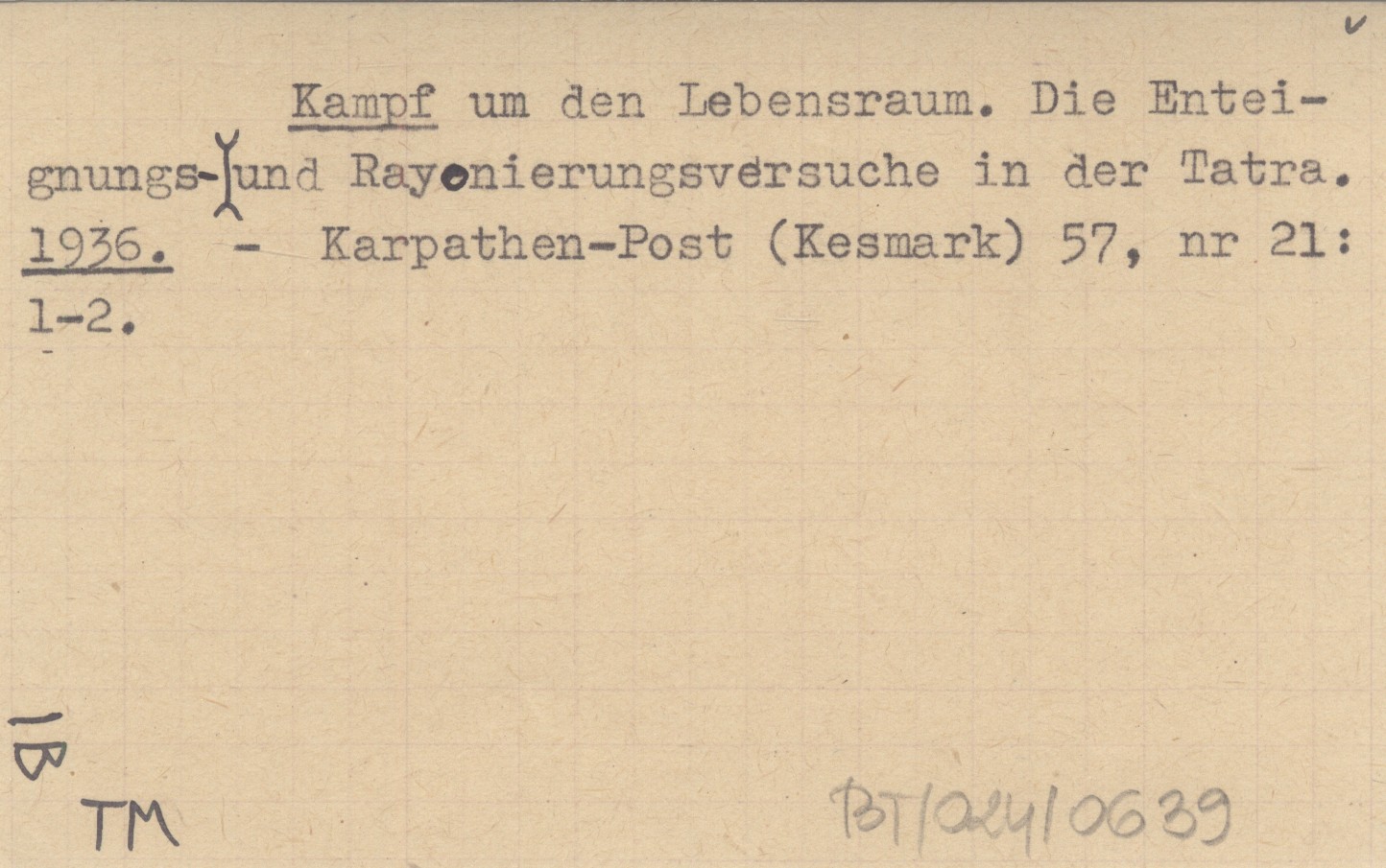 Kampf um den Lebensraum. Die Enteignungs- und Rayonierungsversuche in der Tatra. 1936