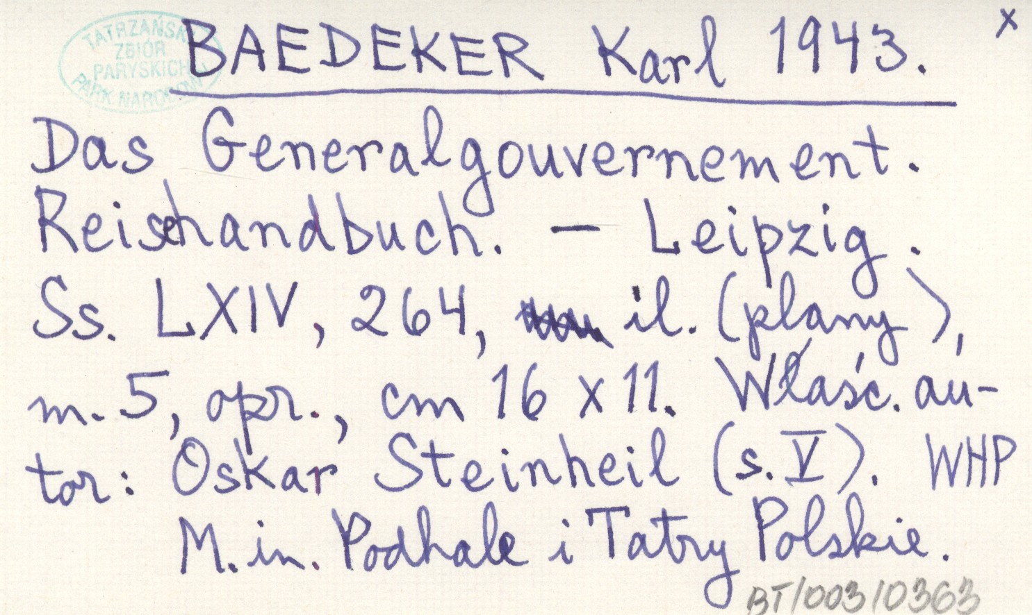 Leipzig , LXIV, 264 s., il., 5 map, opr., 16x11 cm. M. in. Podhale i Tatry Polskie. Właśc. autor: Oskar Steinheil (s. V).