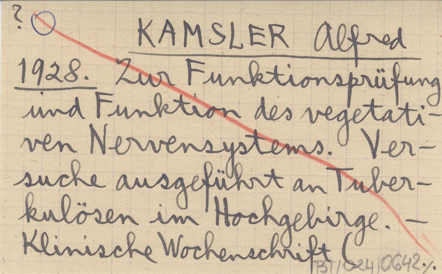 KAMSLER Alfred 1928 Zur Funktionsprüfung und Funktion des vegetativen Nervensystems. Versuche ausgeführt an Tuberkulösen im Hochgebirge.