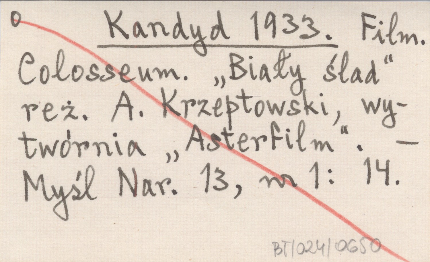 Kandyd 1933 Film. Colosseum. "Biały ślad" reż. A. Krzeptowski, wytwórnia "Asterfilm".