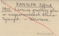 KAMSLER Alfred 1936 Gruźlica płuc, istota, zapobieganie i leczenie.
