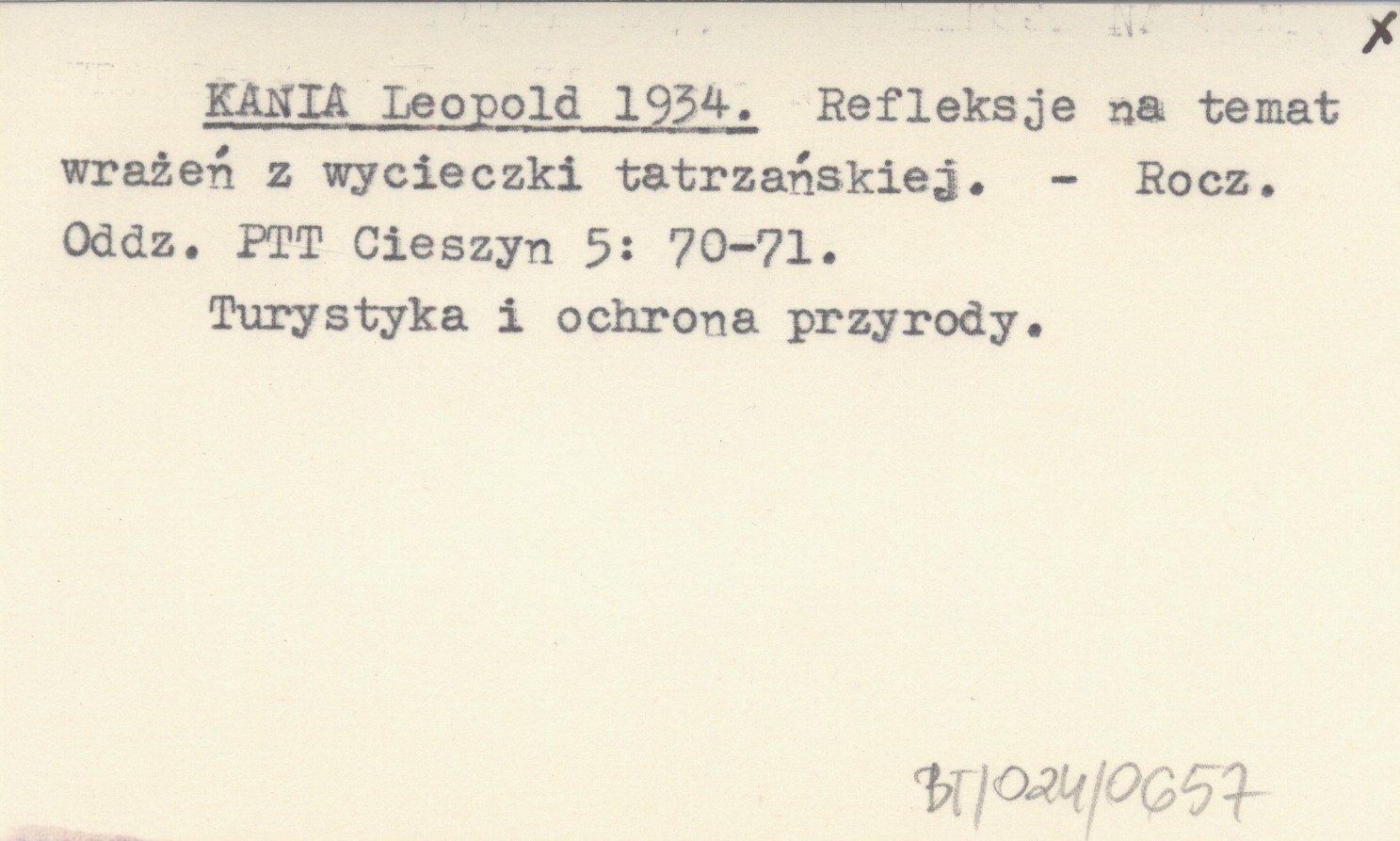 KANIA Leopold 1934 Refleksje na temat wrażeń z wycieczki tatrzańskiej.