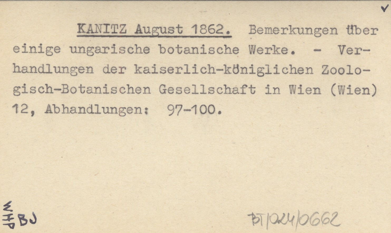 KANITZ August 1862 Bemerkungen über einige ungarische botanische Werke.