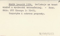 KANIA Leopold 1934 Refleksje na temat wrażeń z wycieczki tatrzańskiej.