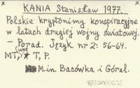 KANIA Stanisław 1977 Polskie kryptonimy konspiracyjne w latach drugiej wojny światowej.