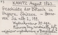 KANITZ August 1863... Geschichte der Botanik in Ungarn. Skizzen.