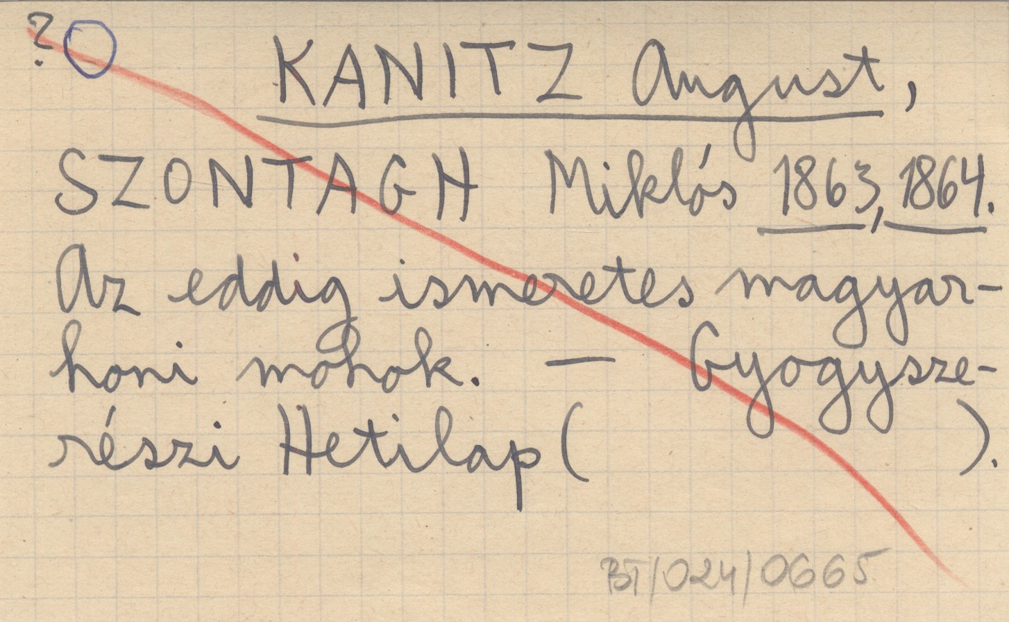 KANITZ August SZONTAGH, Miklós. ; 1863, 1864 Az eddig ismeretes magyarhoni mohok.