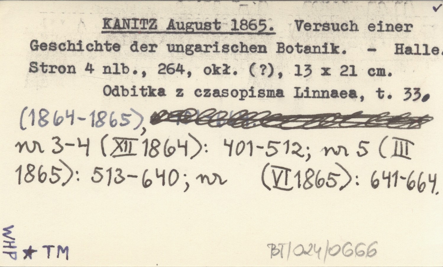 KANITZ August 1865 Versuch einer Geschichte der ungarischen Botanik.