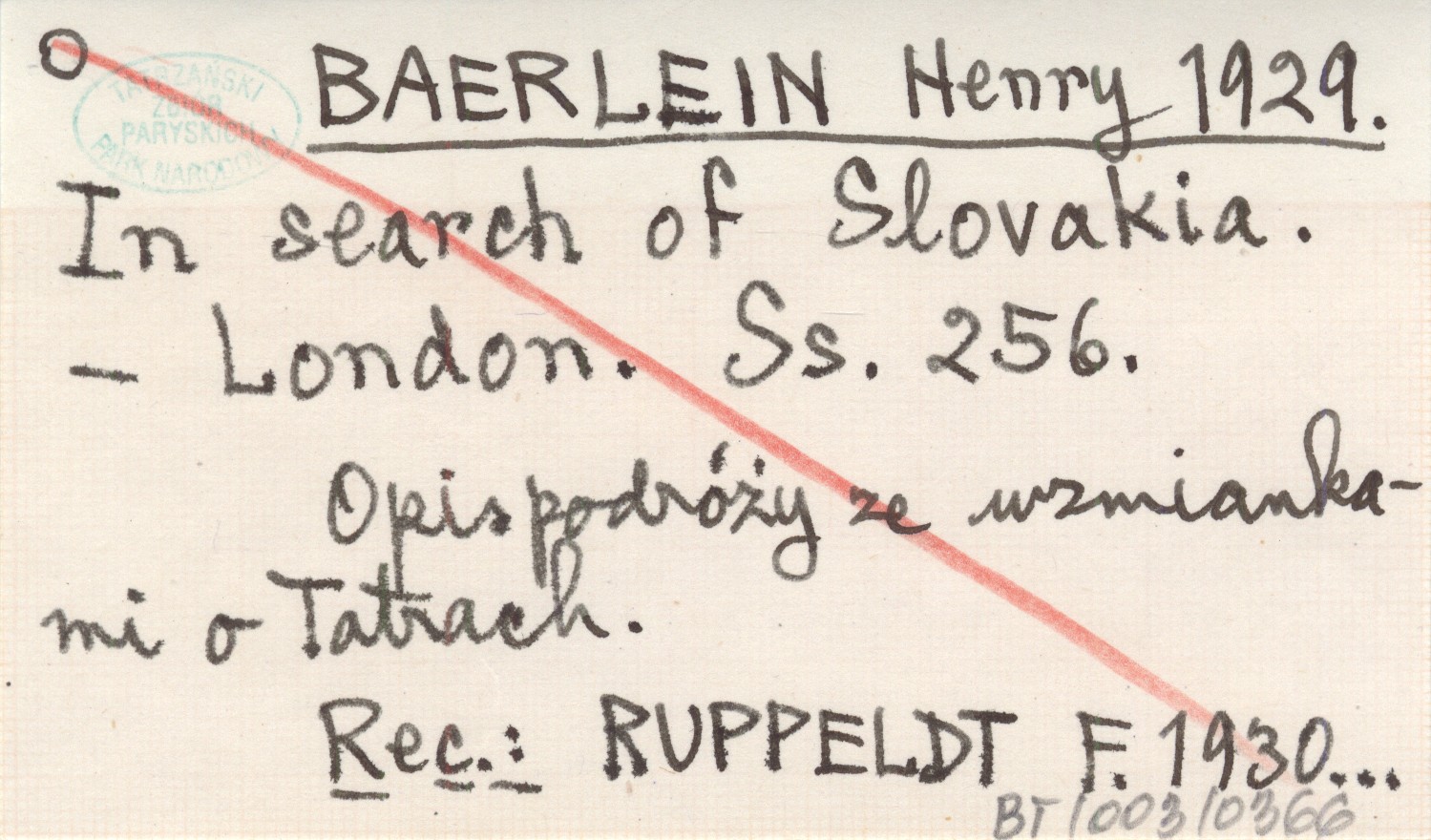 London , 256 s. Opis podróży ze wzmiankami o Tatrach. REC: RUPPELDT F. 1930...