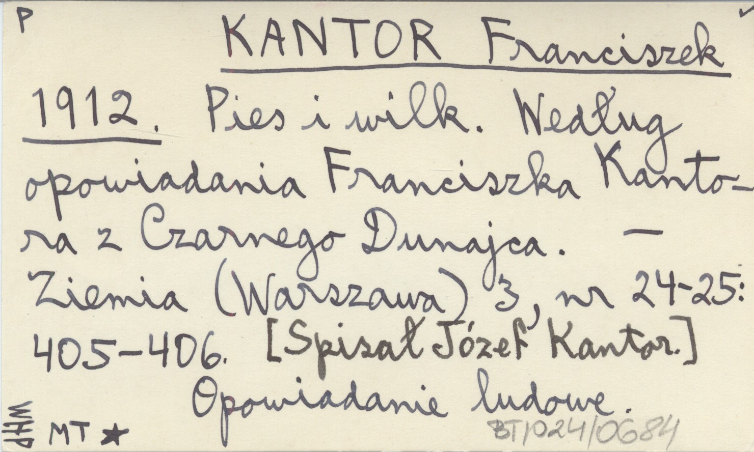 Ziemia (Warszawa) , 3, nr 24-25: 405-406. Opowiadania ludowe. [Spisał Józef Kantor].