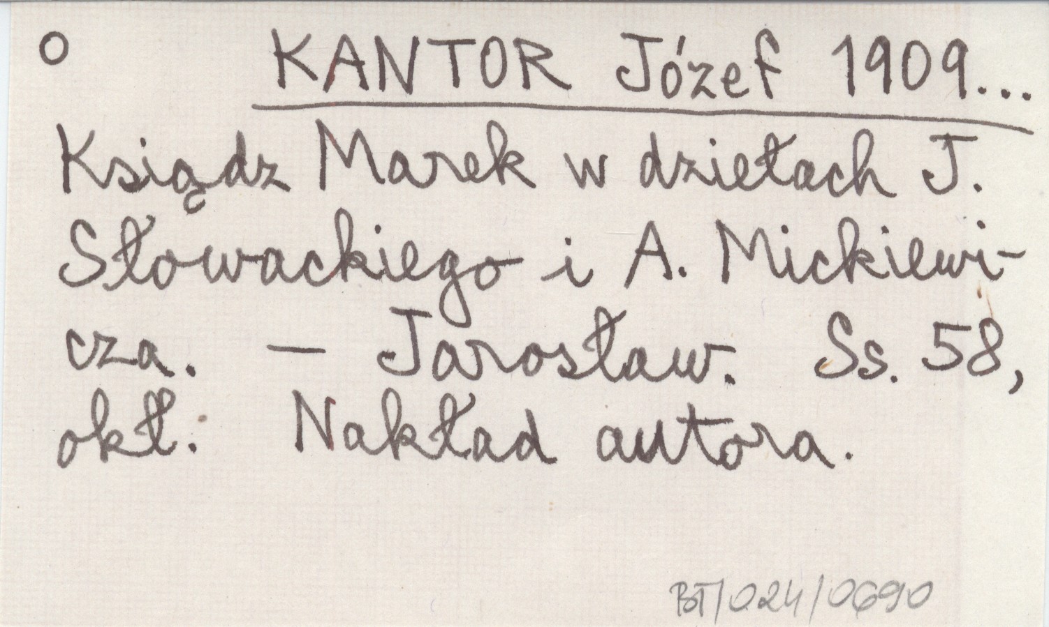 KANTOR Józef 1909... Ksiądz Marek w dziełach J. Słowackiego i A. Mickiewicza.