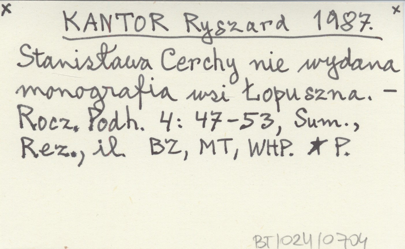 KANTOR Ryszard 1987 Stanisława Cerchy nie wydana monografia wsi Łopuszna.