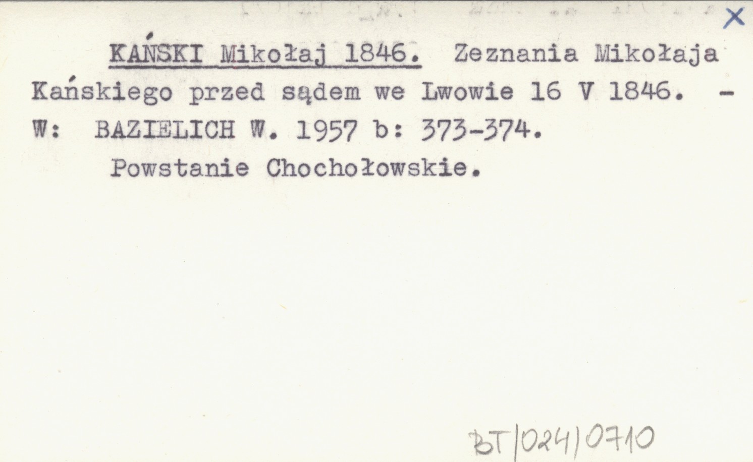 KAŃSKI Mikołaj 1846 Zeznania Mikołaja Kańskiego przed sądem we Lwowie 16 V 1846.