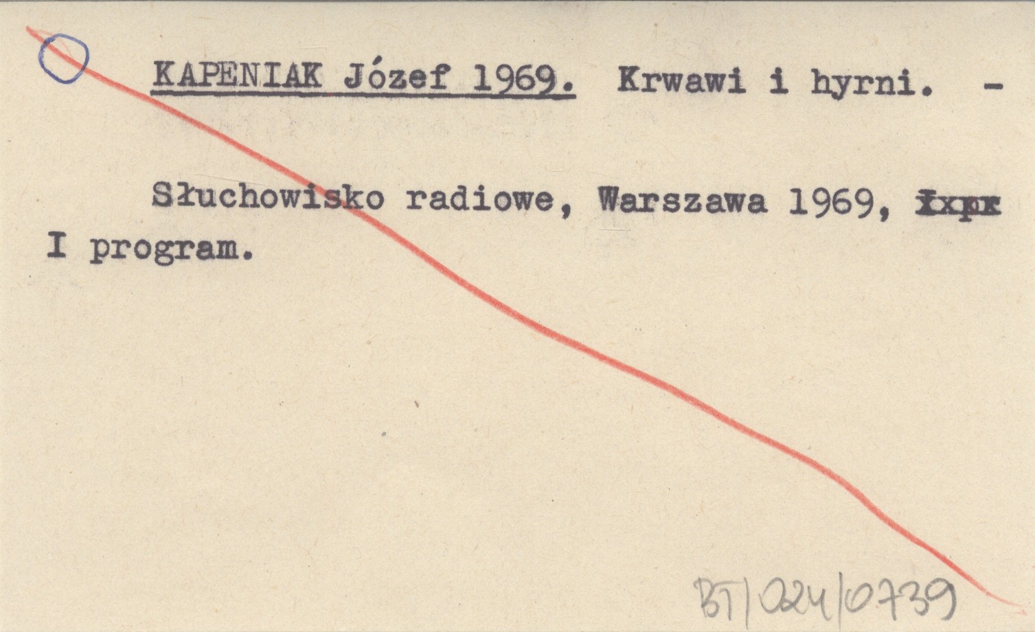 Słuchowisko radiowe, Warszawa 1969, I program.