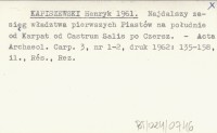 KAPISZEWSKI Henryk 1961 Najdalszy zasięg władztwa pierwszych Piastów na południe od Karpat od Castrum Salis po Czersz.