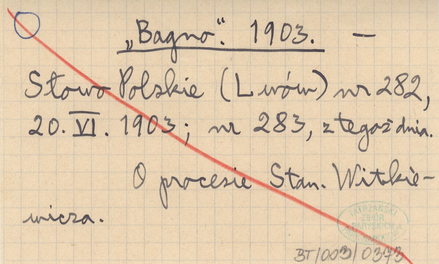 Słowo Polskie (Lwów) , Nr 282 (20 VI 1903) ; nr 283 (20 VI 1903). O procesie Stan. Witkiewicza.