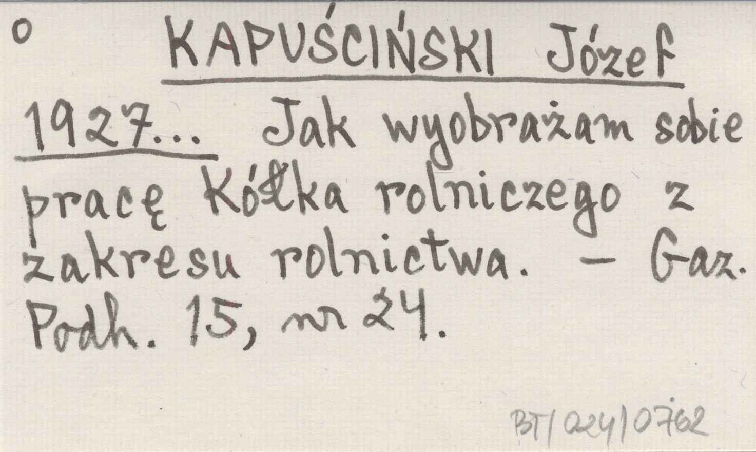 KAPUŚCIŃSKI Józef 1927... Jak wyobrażam sobie pracę Kółka rolniczego z zakresu rolnictwa.