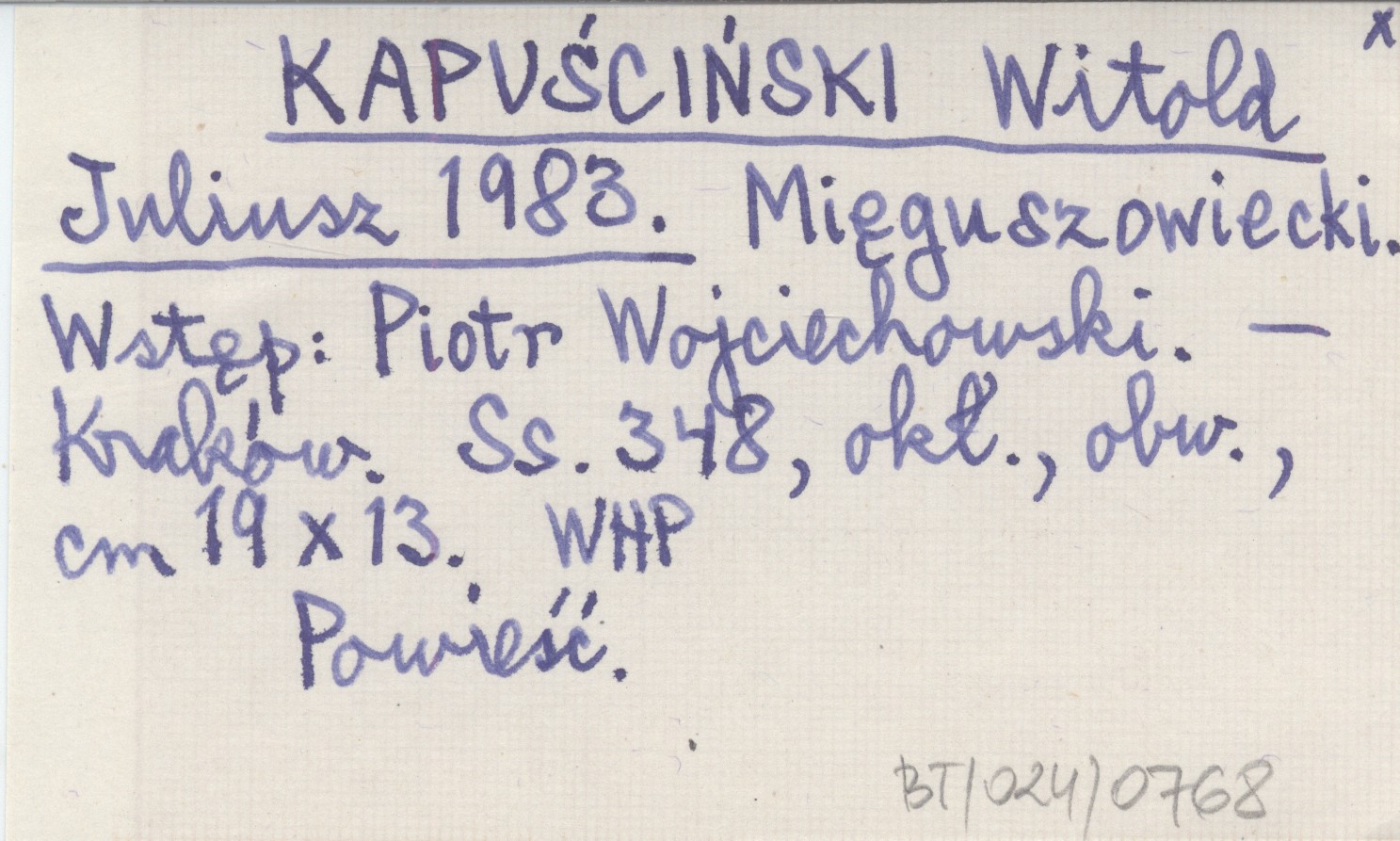 KAPUŚCIŃSKI Witold Juliusz 1983 Mięguszowiecki. Wstęp: Piotr Wojciechowski.