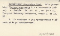 KAPU¦CIŃSKI Stanisław 1945 Rola jarzębiny (Sorbus aucuparia L.) w biocenozie le¶nej.